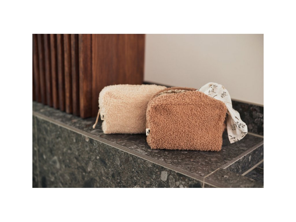 Toaletné puzdro s uzatváraním na zips je vyrobené z krásnej buklej textílie. Využijete ho na prehľadné uloženie toaletných potrieb pre vaše bábätko doma aj na cestách.