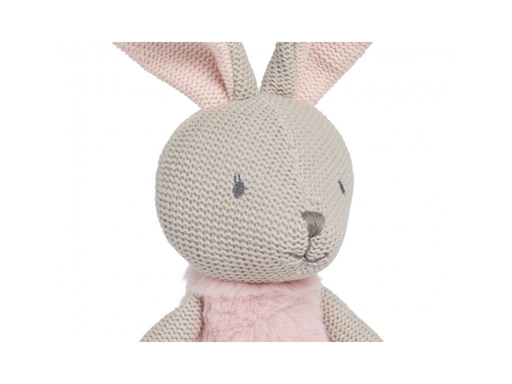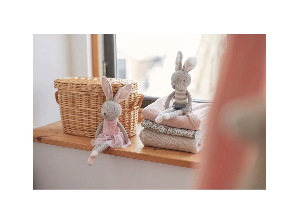 Rozkošná zajačica v ružových šatách je vďaka svojmu prevedeniu z jemnej bavlnenej pleteniny ideálna ako maznáčik do postieľky pre pokojné zaspávanie. Môže sa stať súčasťou mnohých detských hier aj slúžiť ako krásna dekorácia v detskej izbe.