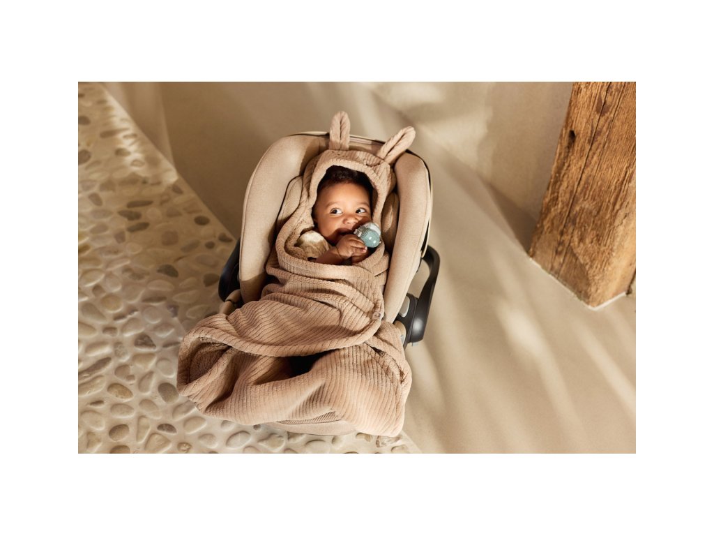 Zavinovačka z mäkkej rebrovanej textílie s plyšovou podšívkou umožňuje ľahko a rýchlo bábätko zabaliť a zaistiť mu pocit bezpečia, tepla a pohodlia. Kapucňa zaistí teplo na hlavičku aj pri spaní dieťaťa v chladnejšom prostredí. Zavinovačka sa zapína pomocou suchých zipsov.