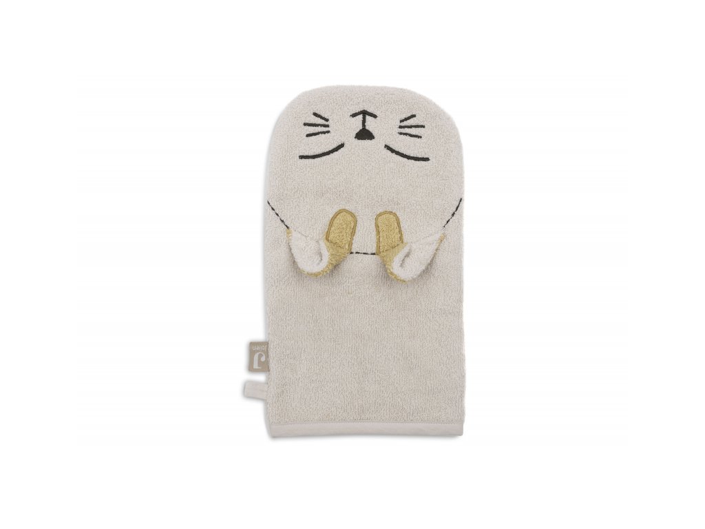Praktická žinka z jemnej frotej bavlny v podobe rozkošnej mačičky je ideálna pre umývanie citlivej pokožky vášho bábätka.
