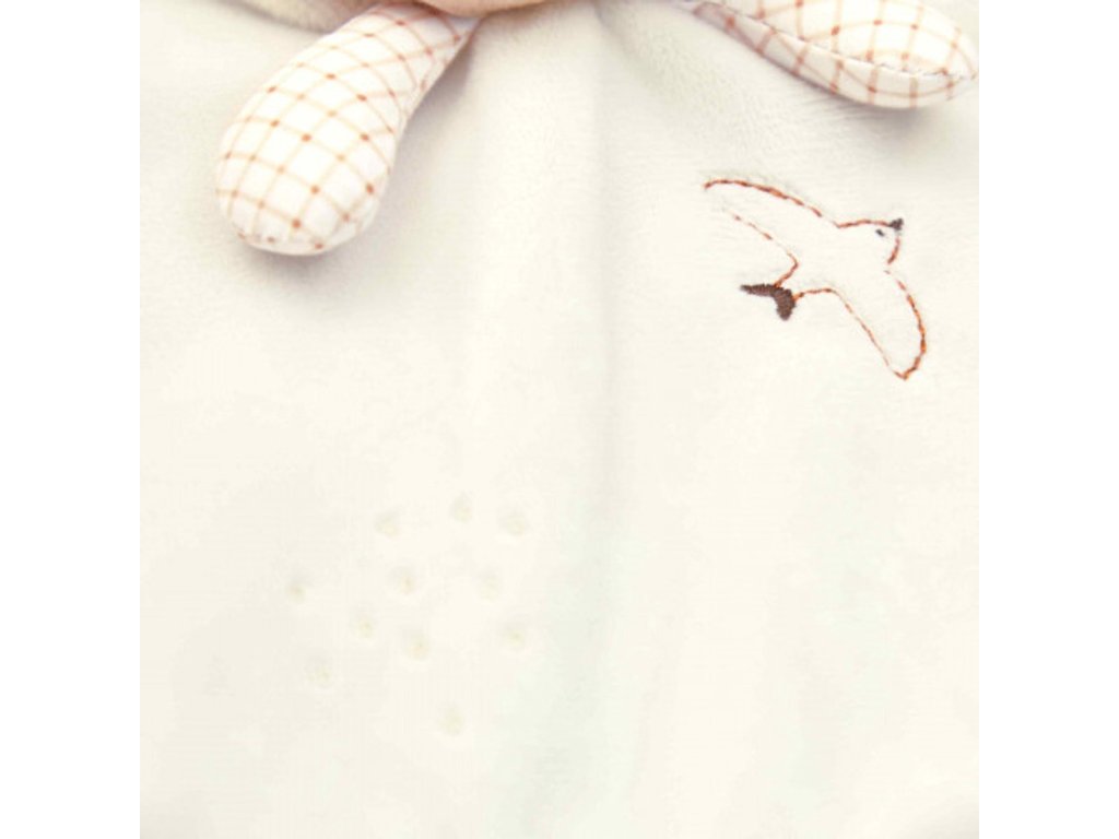 Objavte krémového okrúhleho mojkáčika v podobe zajačika, mäkkého a upokojujúceho spoločníka pre vaše dieťa od narodenia.