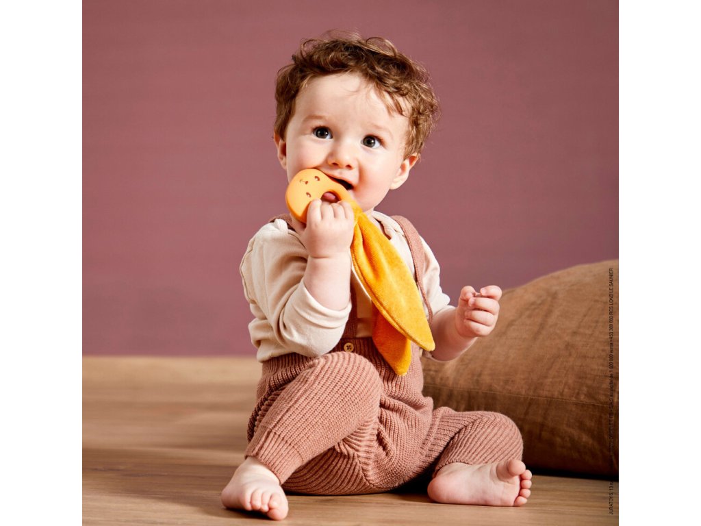 Kaloo Lapinoo Silikónové hryzátko s uväzovacími ušami okrové
