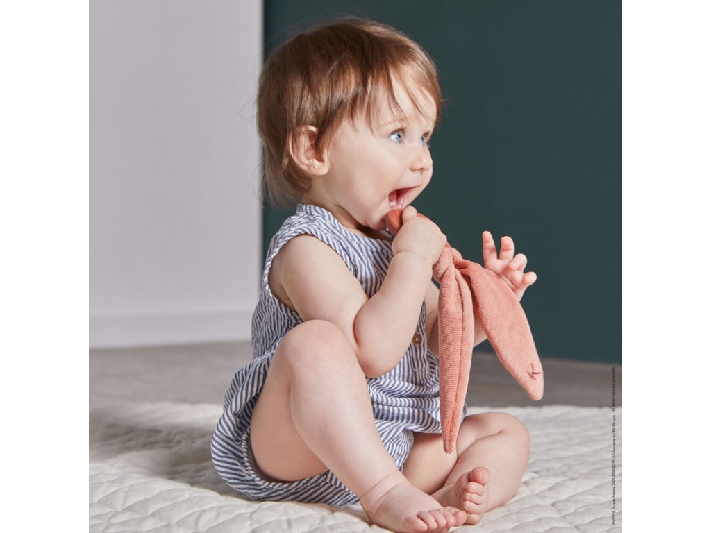 Hryzacia hračka Kaloo Pupu je mäkká, guľatá a veľkosti tak akurát pre malé ručičky a pusinky. Jedna strana hryzacej hračky je hladká a druhá strana má hrbolčeky, ktoré stimulujú hmat a prinášajú úľavu svrbeniu ďasien dieťaťa. Hryzacia hračka zajačik má dlhé uši, ktoré dieťa ľahko dobre uchopí. Vďaka dlhým ušiam sa dá hryzacia hračka tiež ľahko zaviazať, aby nespadla. Uši je možné zložiť na umytie.