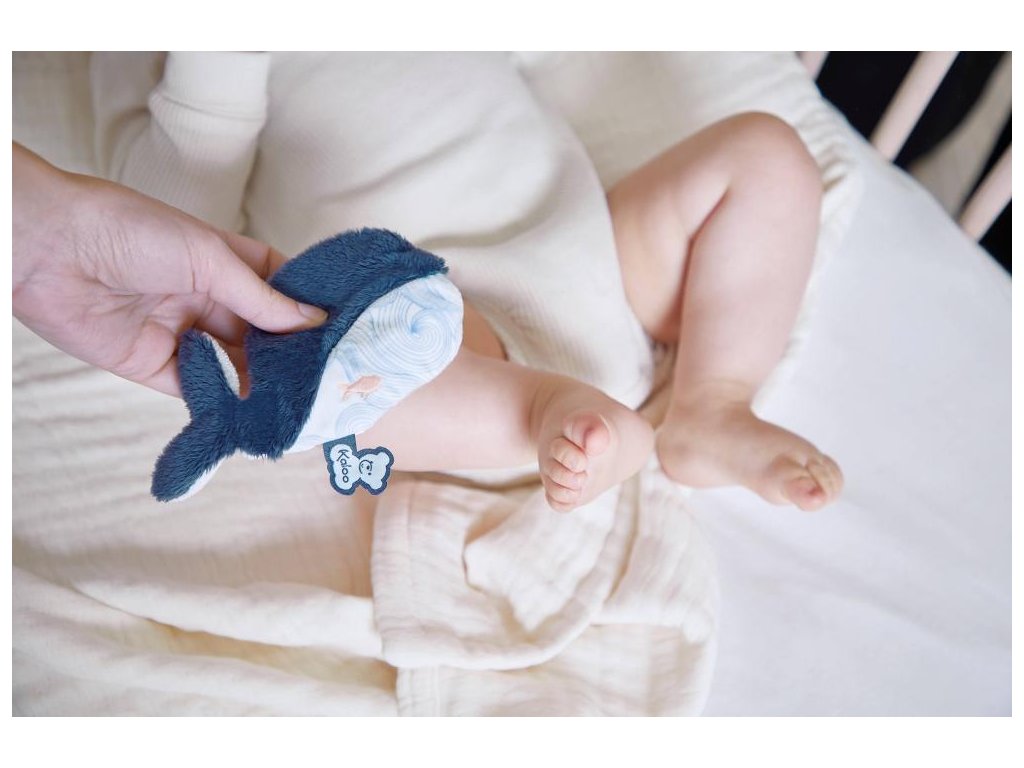 Vyrobené z mäkkej modrej kožušiny, bude môcť upokojiť a uvoľniť dieťa. Jeho bruško zdobí potlač „Dance of the waves“ zdobená výšivkou rýb, ktorá pripomína pokoj hlbokého mora a vlnu hebkosti a pohody, ktorú prináša plyš. Jeho optimálna veľkosť je ideálna na upokenie miesta, ak sa dieťa napríklad udrie, alebo má zýšený teplotu a bolí ho hlavička a pod. Bez vrecka sa používa ako prítulný malý plyšák. Toto je plyšák, ktorého dieťa uprednostní.