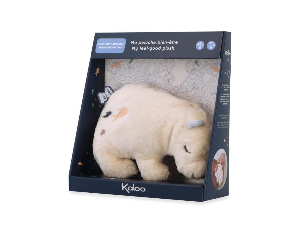 Jeho bruško zdobí potlač „Dance of the waves“ zdobená výšivkou rýb, ktorá pripomína pokoj hlbokého mora a vlnu hebkosti a pohody, ktorú prináša plyš. Jeho veľkorysá veľkosť je ideálna na zahriatie dieťaťa v posteli a upokojenie. Bez vrecka sa používa ako prítulný plyšák.