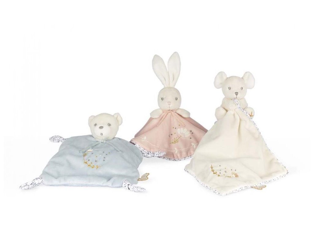 Plyšový medvedík na maznanie z nadčasovej série Perle od francúzskej spoločnosti Kaloo je vynikajúci darček pre najmenšie bábätká už od narodenia.