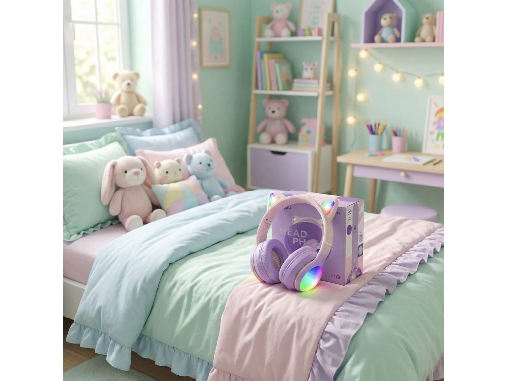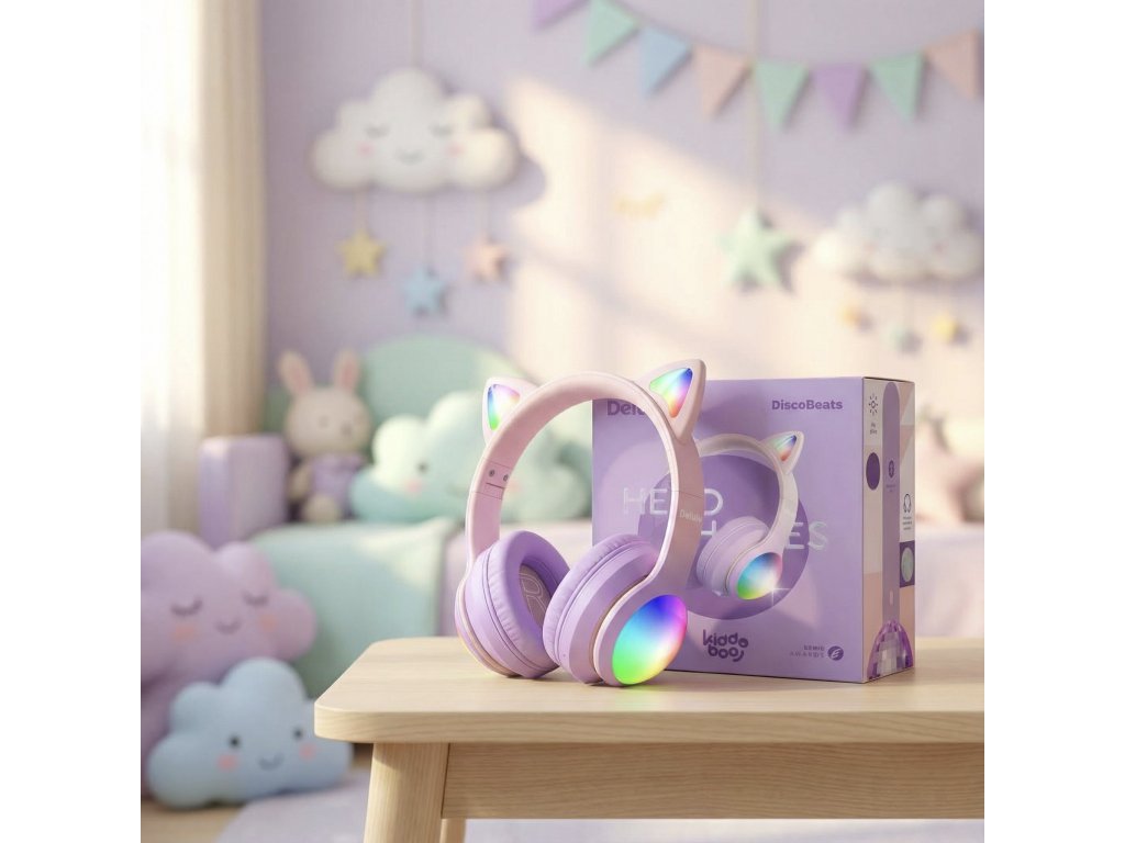 Hlavné funkcie:Štýlový dizajn v modrej farbe s LED svetlami na vonkajšej strane slúchadielSilná 800mAh batéria – až 8 hodín prehrávaniaObmedzenie hlasitosti na 86 dB – bezpečné pre detský sluchSkladacie a ergonomické prevedenie – pohodlie pri noseníKvalitný mikrofón + ovládanie hovorov a hlasitostiBluetooth 5.2 – stabilné pripojenie s dosahom do 10 metrovInteraktívne LED efekty – disco svetelná show pri každom prehrávaní