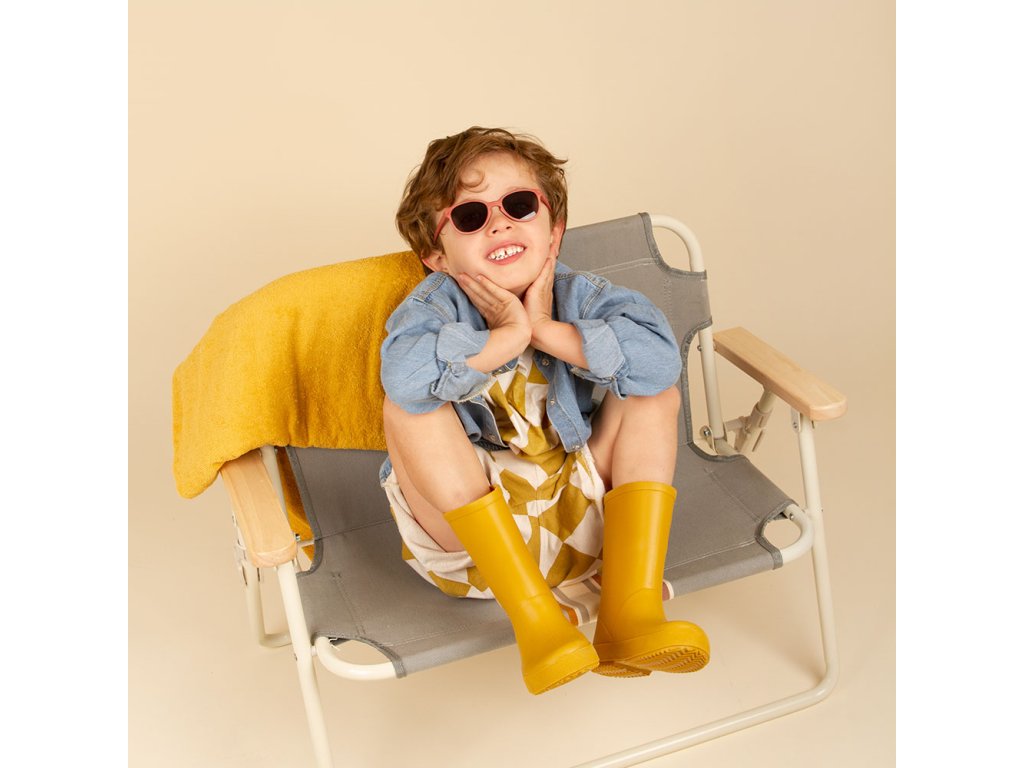 Prémiové slnečné okuliare vyvinuté francúzskymi odborníkmi špeciálne pre malé deti. Sú jedinečné vďaka nerozbitnému, flexibilnému, extra ľahučkému rámu, ktorý netlačí za uškami ani na nose. Poskytujú tú najvyššiu ochranu UV filtrov spolu s filtrom modrého svetla v kvalitných polykarbonátových sklách. Dokonalá ochrana a dokonalý dizajn aj pre tie najmenšie deti. Extra ochrana 100% UVA, UVB a UVC filter, kategória 3 odolné polykarbonátové sklá (kvalitnejší filter ako akrylové sklá) novinka – Blue Blocker – filter škodlivého modrého svetla dostatočná veľkosť skiel, aby zatienila celé okolie očí certifikované podľa európskych noriem EN ISO 12312-1:2013/A1:2015 Extra bezpečnosť nerozbitný ohybný rám – deti bočnice nezlomia ani nevykrútia bez nebezpečných pántov a skrutiek, ktoré znamenajú nebezpečenstvo pri úrazoch Extra pohodlie ultra ľahký a flexibilný rám bočnice tenké a tvarované, aby netlačili za uškami odnímateľná gumička udrží okuliare správne nasadené Rešpekt k prírode plne recyklovateľné nerozbitné = dlhá životnosť praktický obal „CARRY-ME“ z recyklovaného papiera Doplnky v balení: prispôsobiteľný popruh vrecúško na okuliare vhodné aj na čistenie okuliarov Možnosť vloženia dioptrických skiel, informujte sa u Vášho optika. Veľkosť 1-2 roky: Šírka okuliarov: 96 mm Výška okuliarov: 35 mm Dĺžka stránic: 125 mm Veľkosť 2-4 roky: Šírka okuliarov: 102 mm Výška okuliarov: 38 mm Dĺžka stránic: 125 mm Veľkostnú tabuľku KiETLA nájdete tu . Detské oči sú na slnko veľmi citlivé a zraniteľné. Šošovka ešte nie je dostatočne vyvinutá, aby chránila sietnicu ako u dospelých. Šošovka sa vyvíja až do veku 12 rokov dieťaťa. Dovtedy veľká časť UV žiarenia prechádza až k sietnici a spôsobuje poškodenia, ktoré sa vekom kumulujú a môžu sa prejaviť až v dospelosti. Preto je veľmi dôležité chrániť oči detí už od malička.