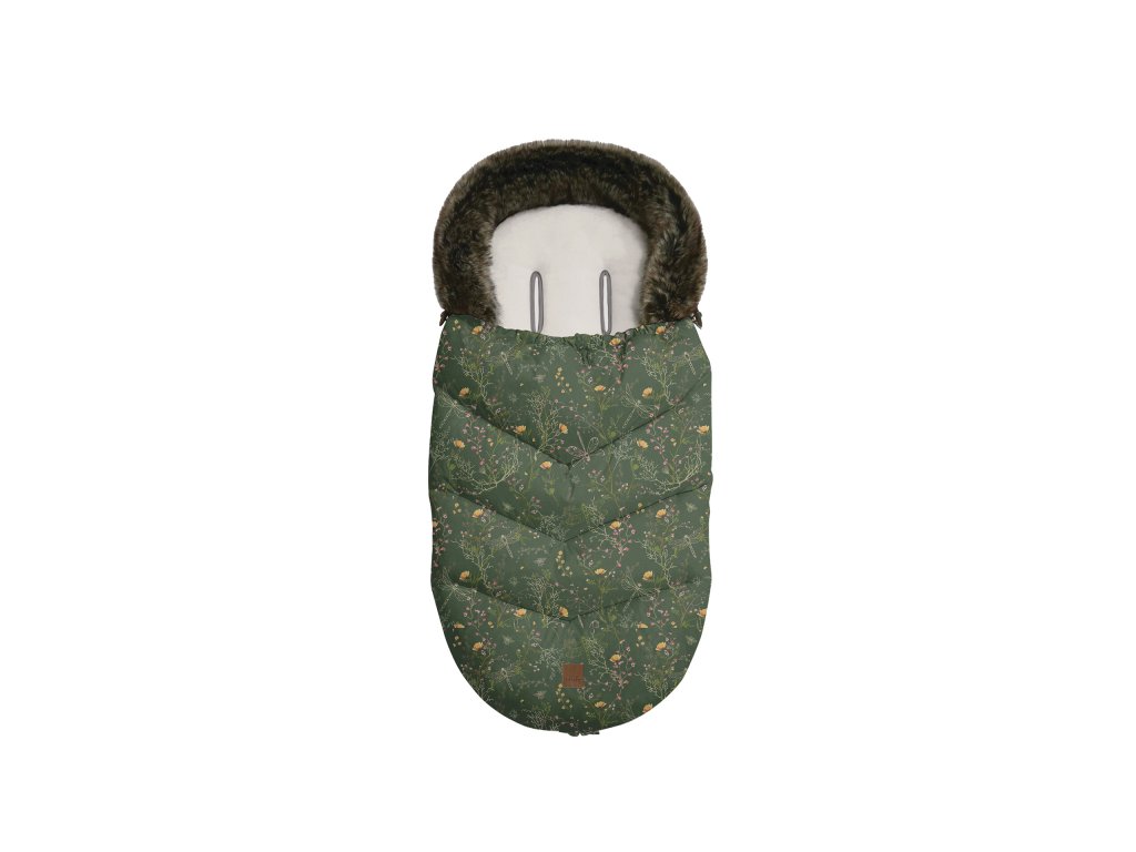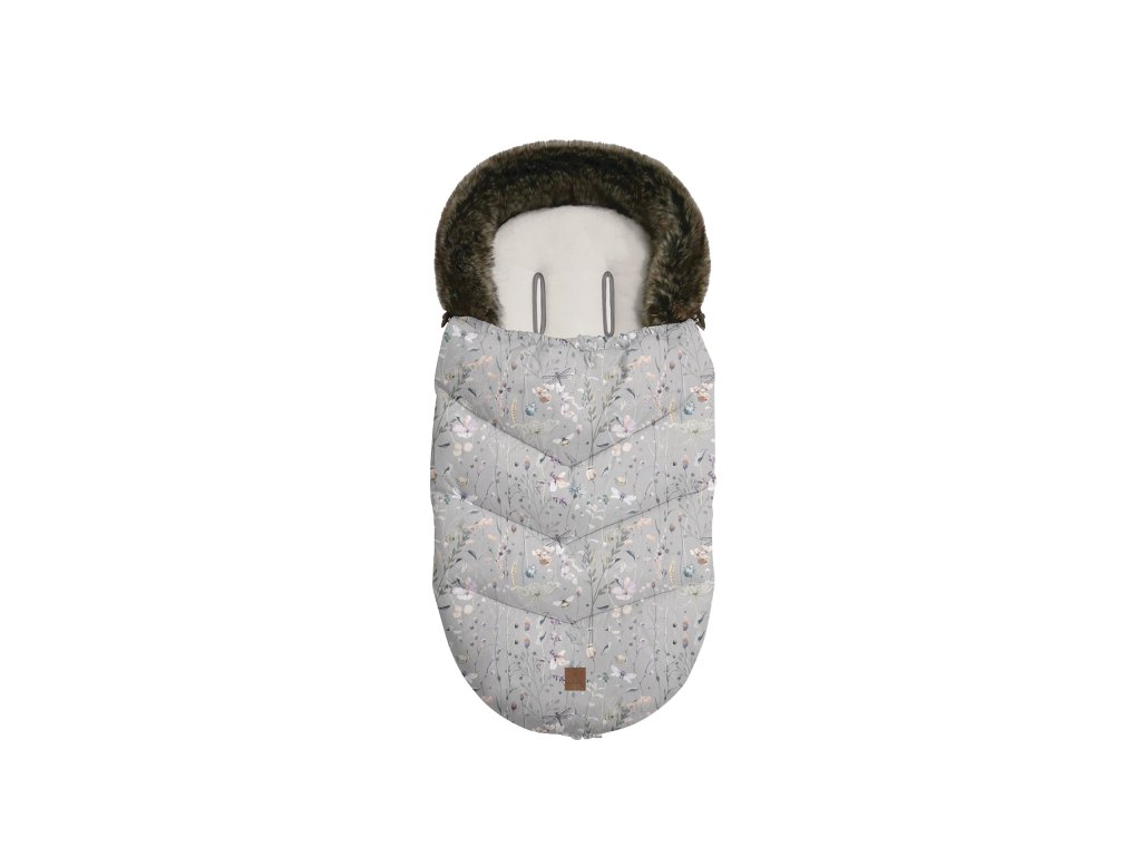 Teplý fusak do kočíka s vodeodolným vonkajším povrchom a mäkkou fleecovou podšívkou vo vnútri dokonale ochráni vaše dieťa v kočíku pred nepriazňou počasia. Odnímateľný lem z umelej kožušiny a luxusná prešívaná tkanina s krásnou kvetinovou potlačou dotvára elegantný vzhľad fusaku. Odnímateľný nánožník vybavený celoobvodovým zipsom uľahčuje manipuláciu s dieťaťom.