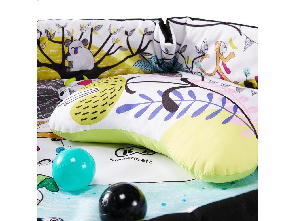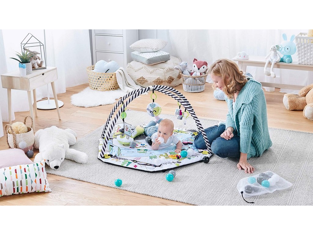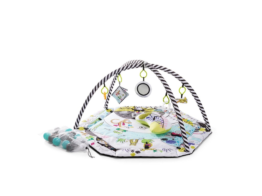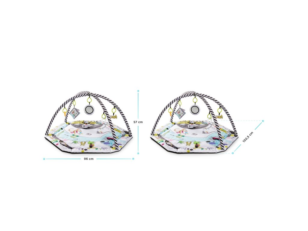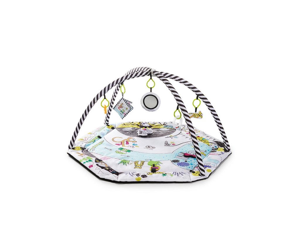 Hracia deka pre deti od narodenia. V sade sa nachádza 7 hračiek s rôznymi estetickými a kognitívnymi vlastnosťami: zrkadlo, šuštiaca kniha, 2 hryzadlá, pískací tiger, hrkálka a zvoniaci sloník.