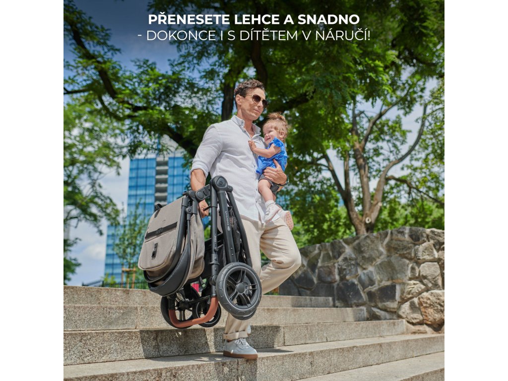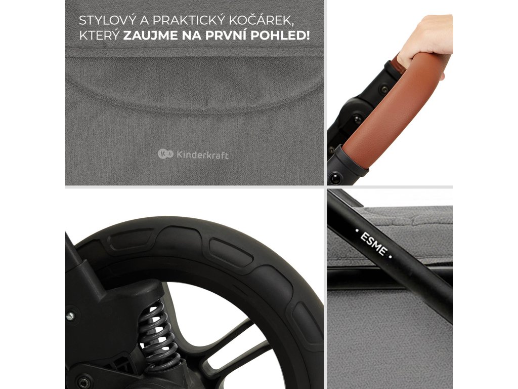 ESME je multifunkčný detský kočík 3 v 1, ktorý vás očarí svojou funkčnosťou a eleganciou. Zaujmete pozornosť krásnym, moderným dizajnom – decentné farebné prevedenie a starostlivo spracovaný rám zaistia, že si každodenné prechádzky s dieťaťom zamilujete ešte viac. Kočík oceníte aj vďaka veľkej vaničke s ventilačným panelom, ktorú v troch jednoduchých krokoch premeníte na športové sedadlo. Toto riešenie 2 v 1 vám ušetrí miesto pri skladovaní jednotlivých častí.