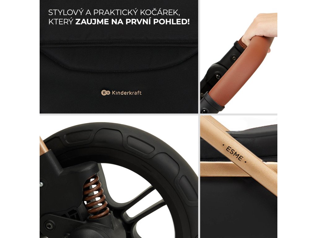 KINDERKRAFT Kočík kombinovaný 3v1 Esme Pro Pure Black