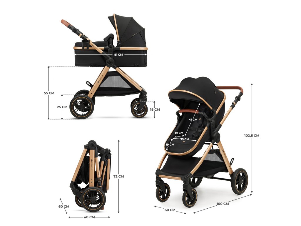 - Zložený kočík: 72 × 60 × 40 cm