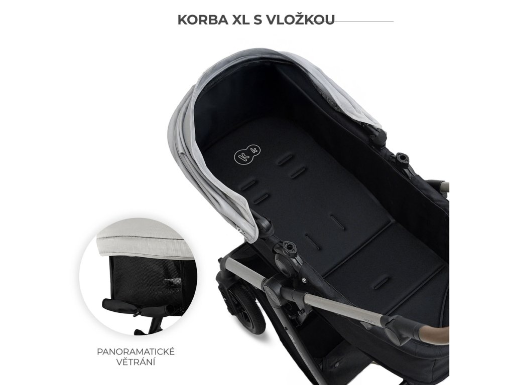 Vanička XL s panoramatickým vetraním: väčšia vanička poskytuje pohodlie aj väčším deťom. Panoramatické vetranie zabezpečuje dostatočné prúdenie vzduchu, aby sa vaše dieťa cítilo komfortne za každého počasia.