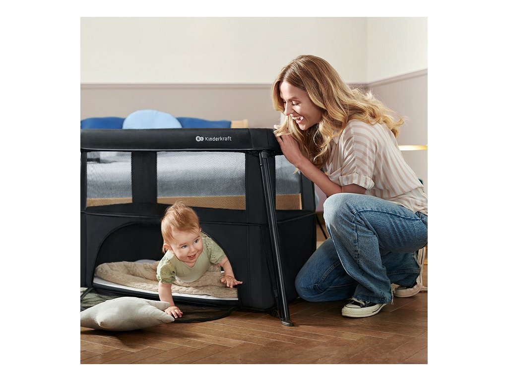 Ohrádka má praktický bočný otvor, cez ktorý môže dieťa samo vyliezť. Boky postieľky sú vyrobené zo vzdušnej sieťoviny, ktorá umožňuje rodičovi mať dieťa stále na očiach – či už spí alebo sa hrá. Sieťovina zároveň zaisťuje správnu cirkuláciu vzduchu, čo oceníte najmä v horúcich dňoch.