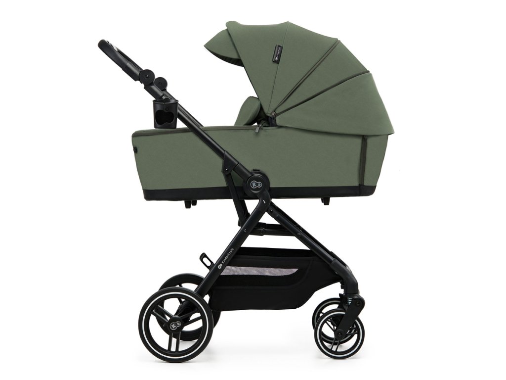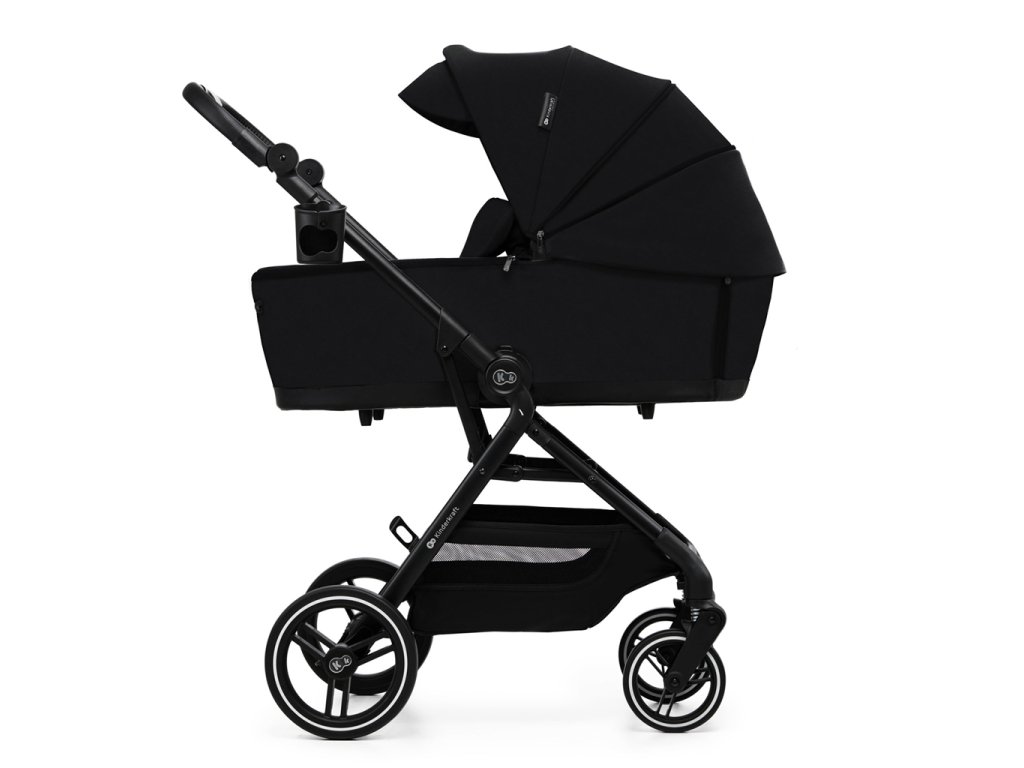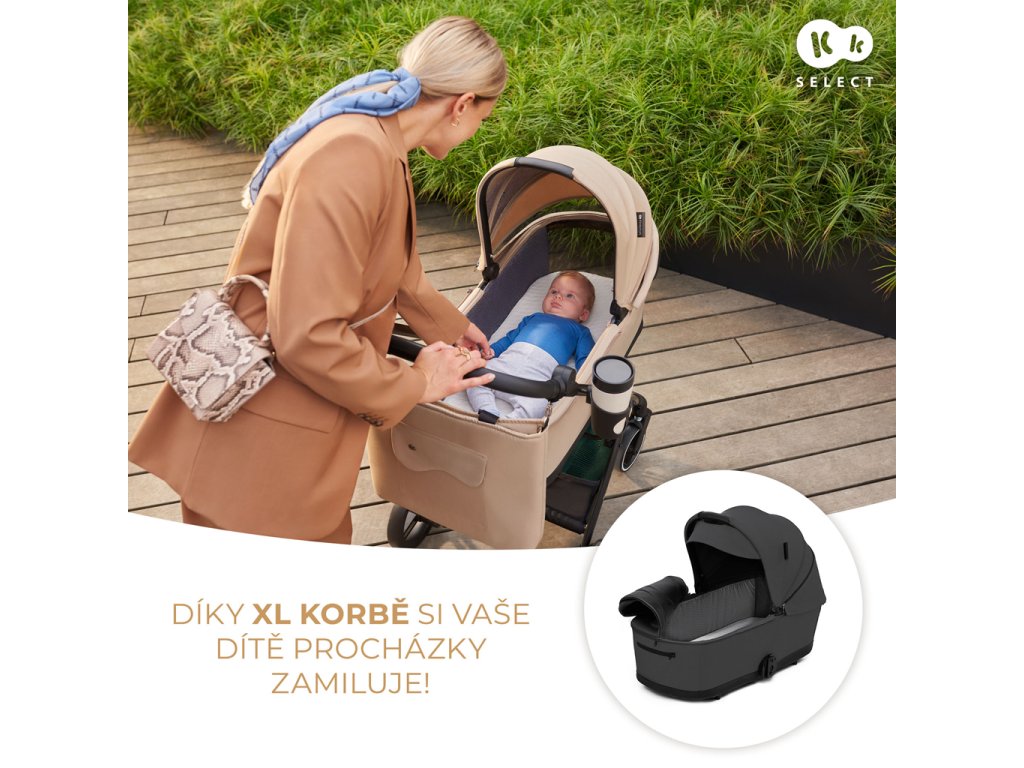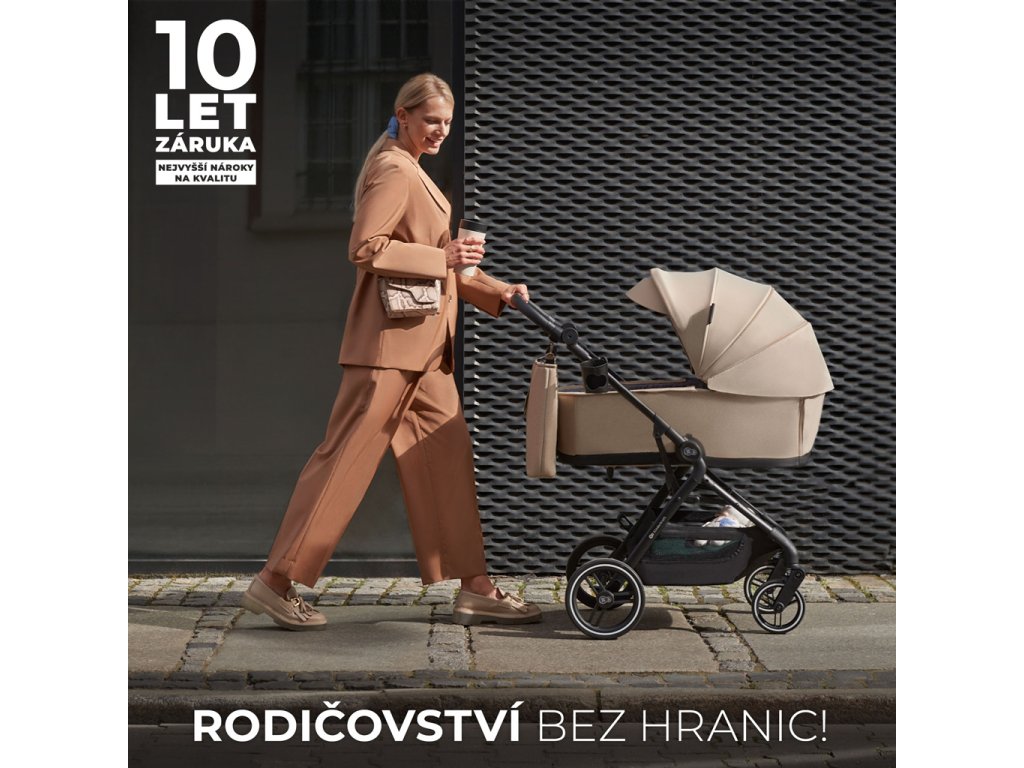 Veľkorysý kôš s nosnosťou až 5 kg pojme všetky potrebné veci. Ďalšia deka a plienky? Alebo nákupy, ktoré ste urobili po ceste domov? Jednoduchý prístup z oboch strán vám umožní rýchlo vytiahnuť každú vec. Kočík sa dodáva aj s príslušenstvom: sieťkou proti hmyzu (v opierke na nohy, ktorú budete mať vždy so sebou), kryt na nožičky, pláštenkou proti dažďu, držiakom na pohár, taškou na rukoväť pre rodiča a adaptérmi na autosedačku.