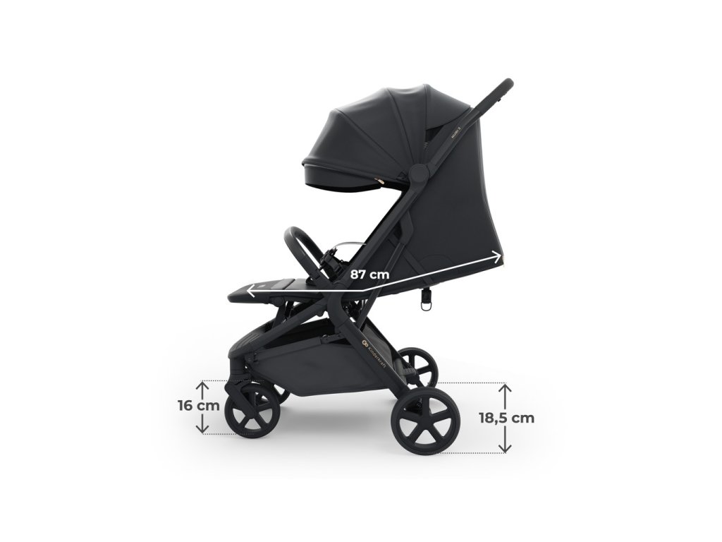 Nový rám, moderné farebné varianty a použitie priedušnej sieťoviny v čalúnení zodpovedajú súčasným potrebám aktívnych rodín, ktoré si zakladajú na dizajne. Kočík ponúka funkcie zvyšujúce pohodlie a bezpečnosť – od magnetickej pracky na páse, cez vodeodolnú striešku s UPF50+ filtrom, až po opierku na nohy z materiálu easyclean. Je to model, ktorý podporuje rodičov na každom kroku.