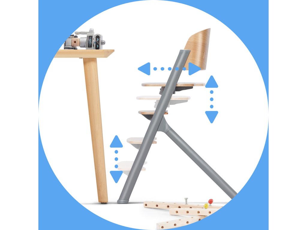 - jednoduché nastavenie sedadla – 4-stupňové nastavenie výšky sedadla umožňuje dieťaťu jesť a hrať sa pri stoloch alebo kuchynských ostrovoch s rôznou výškou.