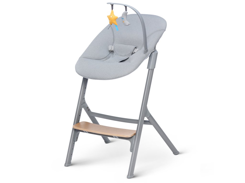 - vysoká hojdačka od narodenia – ležadlo sa môže používať spolu so stoličkou alebo samostatne. Vďaka závesným hračkám si bude dieťa trénovať jemnú motoriku.