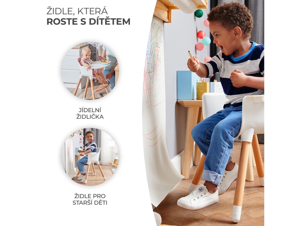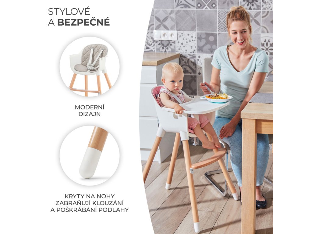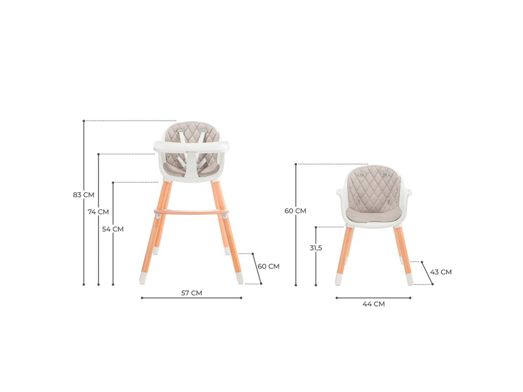 - 2 v 1 – Stoličky SIENNA môžu byť použité ako stoličky na kŕmenie i ako stoličky pre staršie deti. Stačí odskrutkovať nohy, odopnúť tácku a stolička pre staršie dieťa je hotové!