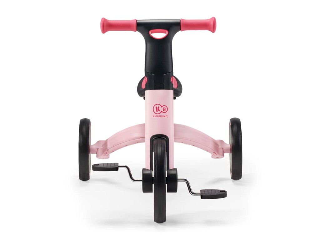 - bicykel umožňuje jednoduchú a rýchlu zmenu funkcií. Stačí otočiť kolesá a dať ich dokopy, až kým nebudete počuť jemné „cvaknutie“ a zafixovať ich pomocou sponky. Ak chcete premeniť kolobežku na trojkolesový bicykel, vytiahnite sponku a rozložte nohy!