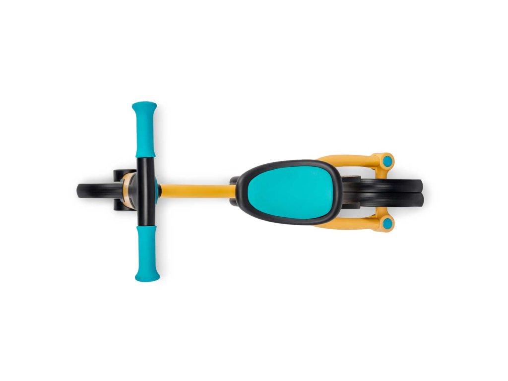 - bicykel umožňuje jednoduchú a rýchlu zmenu funkcií. Stačí otočiť kolesá a dať ich dokopy, až kým nebudete počuť jemné „cvaknutie“ a zafixovať ich pomocou sponky. Ak chcete premeniť kolobežku na trojkolesový bicykel, vytiahnite sponku a rozložte nohy!