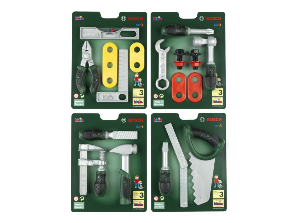 Detská sada chlapčenského náradia v licenciu Bosch. V ponuke sú 4 druhy balení. Každá obsahuje niečo iné.