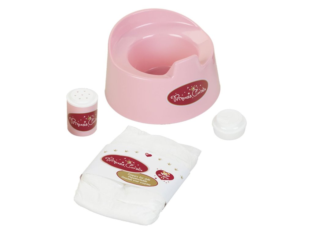 Nočník pre bábiky, fľaštička na detský púder a plienka.