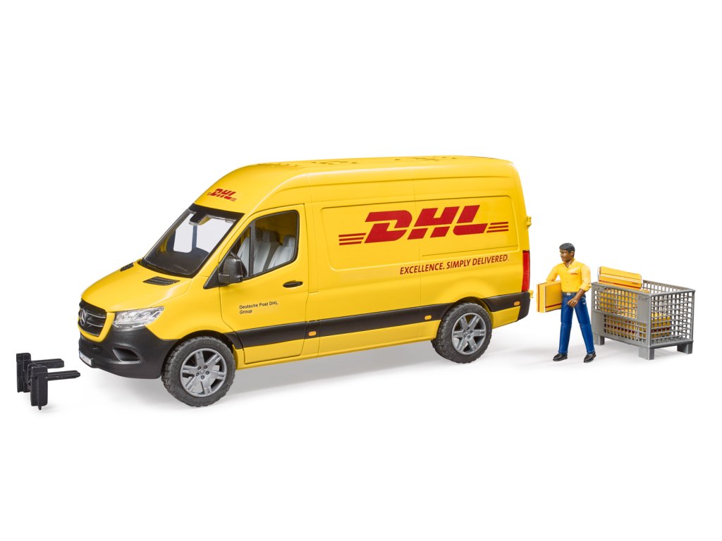 Aj najnovšia verzia Mercedes Benz Sprinter patrí k najúspešnejším modelom v kategórii malých nákladných vozidiel. Vďaka svojej všestrannosti je nepostrádateľný pre obce, záchranné služby a sektor logistiky. DHL sa tiež spolieha na Sprinter ako dodávkové vozidlo. Tie teraz utvárajú všeobecnú podobu ulice. Najnovšiu verziu Sprintera možno teraz objaviť aj u BRUDER ako DHL Transport. Vozidlo má otváracie dvere v kabíne vodiča a vzadu. Zvláštnosťou sú novo vyvinuté posuvné dvere na strane spolujazdca. Model BRUDER je vybavený ovládačom DHL, mrežovým boxom a typickými prepravnými balíčkami DHL. To znamená, že malí kuriéri majú k dispozícii sadu s vysokou hracou hodnotou. Rozmery: 18,9x23x57,2cm. Vek: 3+