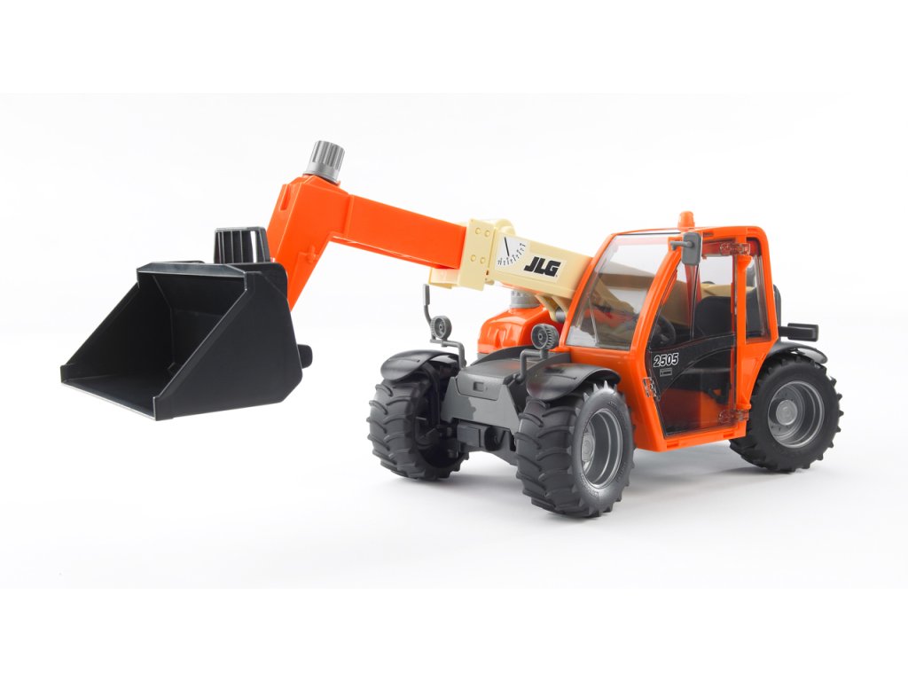 Konštrukčné vozy - JLG 2505 nakladač s teleskopickým predným ramenom 1:16. Tento teleskopický nakladač je vyrobený z vysoko kvalitného a odolného plastu. Model je starostlivo ovládaný štyrmi striebornými otočnými ovládačmi. Okrem nastavenia výšky ramena možno rameno predĺžiť až do dĺžky 40 cm. Naklápať možno aj prednú lyžicu. Nakladač má plne funkčné štvorkolesové riadenie - zatáčajú obe nápravy protismerne, čo umožňuje nakladaču zmenšiť polomer zatáčania. Kabína je z priehľadného nerozbitného polykarbonátu. Vozidlo je vybavené profilovými pneumatikami, ktoré si poradia v každom teréne. Je vhodné do interiéru aj exteriéru. Rozmery produktu: 14 x 36 x 14 cm. Vek: 3+