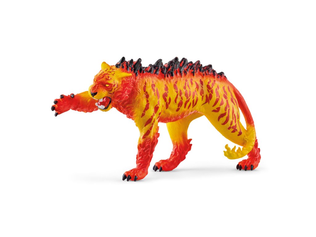 Náš lávový tiger z tematického sveta Schleich® Eldrador sa rád kúpe – najradšej samozrejme v horúcej vode s množstvom peny. Na ľadového tigra, ktorý je jeho najlepší kamarát, pri hraní priateľsky chŕli polovychladnuté uhlíky. Keď niekedy potrebuje napadnúť protivníka alebo si zohriať čaj, dokáže chŕliť aj plamene a lávu. Rozmer: 13,6 x 4,5 x 7,7 cm. Vek: 3+