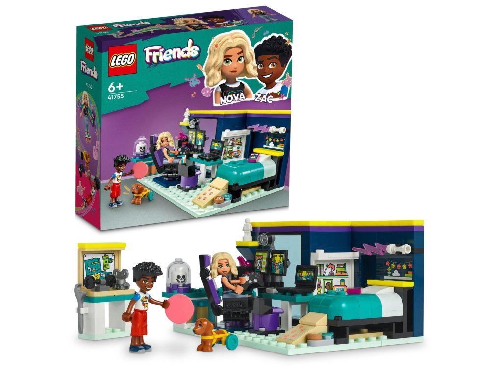 Deti od 6 rokov v Izbe Novy (41755) zo série LEGO® Friends objavia samé úžasné vecičky. Zac si nemyslel, že má s Novou veľa spoločného, no potom zistil, že zbožňuje videohry – presne ako on! Teraz môžu budovať svoje kamarátstvo pri spoločnom hraní. Izba je plná rôznych prvkov: obsahuje herný počítač s klávesnicou a neónovýi chladičmi, hernú stoličku a mikrofón. Deti môžu postavám pomôcť sa o zachránené šteniatko Pickla. Na pracovnom stole deti opravia Picklov vozík a nechýba ani rampa, aby sa ľahšie dokázal dostať na posteľ. Okrem toho sa deti môžu tešiť na celý rad detailov (ako napríklad skrytý plagát), ktoré odhaľujú Norine záujmy.