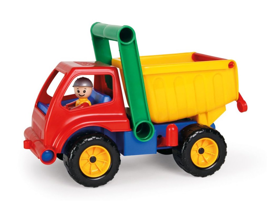 Aktívne auto sklápač z kvalitného plastu a veľmi pevnou stavbou. Je plne mechanicky funkčný. Obsahuje poistku proti nežiaducemu vyklopeniu, odklopiteľnú kabínu a vyberateľného panáčika. Dĺžka: 29 cm. Vhodné pre chlapcov od 3 rokov.