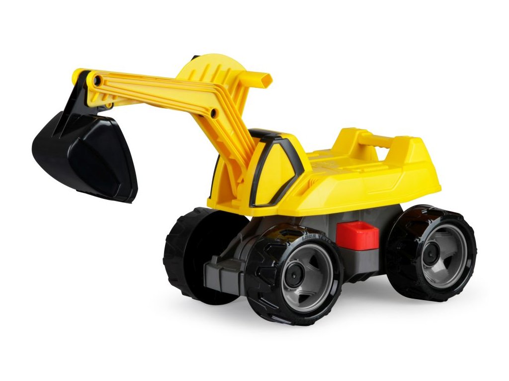 Robustný bager s veľkou plochou na sedenie, 6mm hrubé kovové osky kolies. Moderný detailný design. S ramenom je možné kopať do hĺbky až 20cm. Otočný podvozok o 360 stupňov. Súčasťou poistka na zabezpečenie otáčania. Ovládanie bagrovacieho ramena pomocou dvoch praktických držadiel.