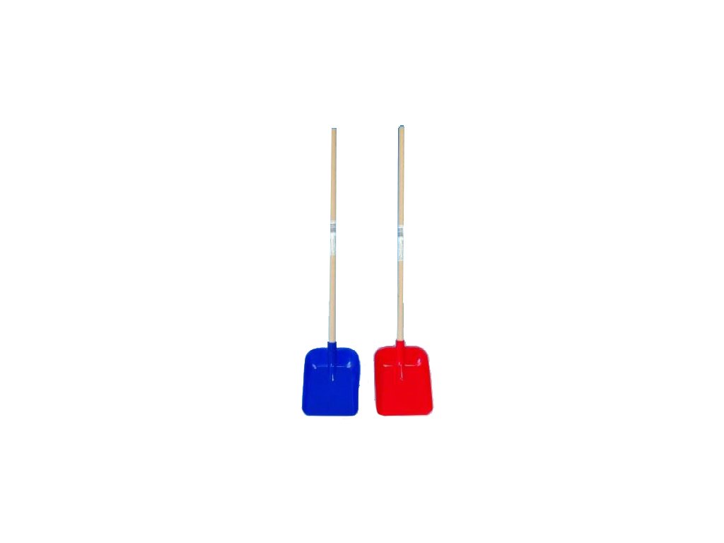 Plastová lopata s drevenou rukoväťou, dlhá 60 cm.