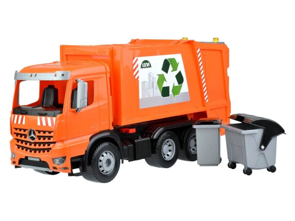Mercedes Arocs smetiar. 6mm hrubé kovové osky pri bicykloch. Súčasťou je poistka proti nežiaducemu vyklopeniu. 1x malá + 1x veľké popolnice. Vyrobené v SROV.