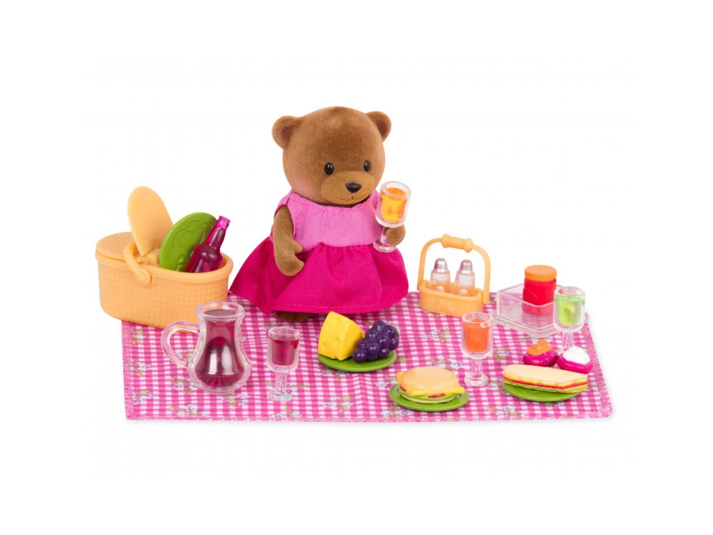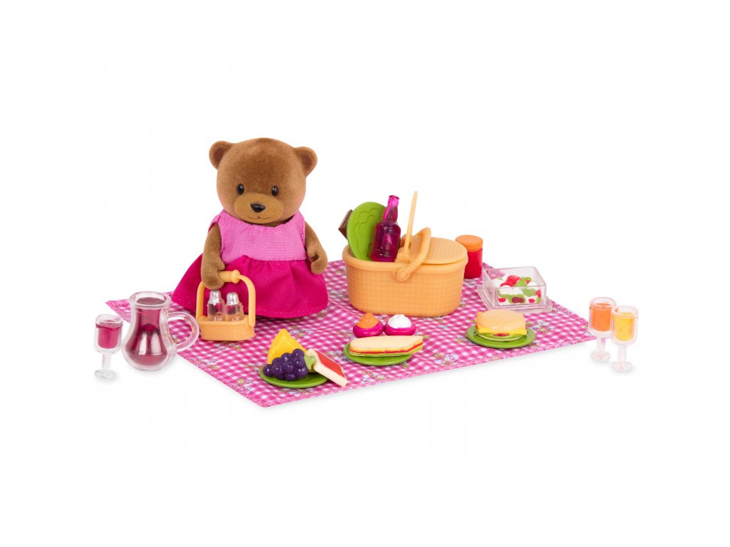 Keď je v mestečku Honeysuckle Hollow krásne počasie, je to ten pravý čas na usporiadanie pikniku v parku. V sade na piknik nájdete všetko, čo kamaráti z mestečka majú radi. Súčasťou balenia je postavička medvedieho dievčatka Hazel.