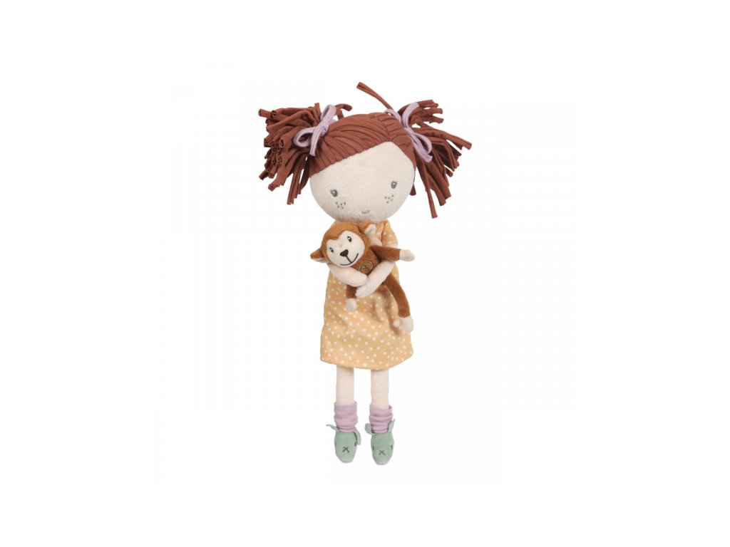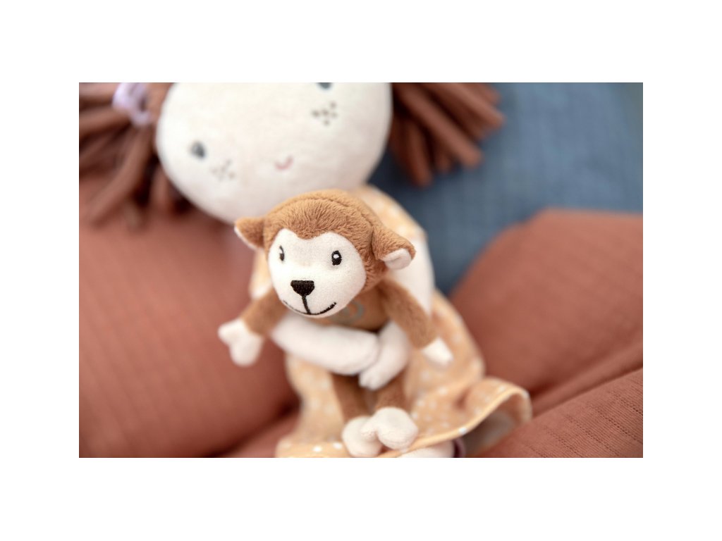 Bábika Sophia je vyrobená z jemného materiálu, ktorý je príjemný na dotyk. Jej krásne bodkované šaty a malá plyšová opička vytvárajú jedinečný design.