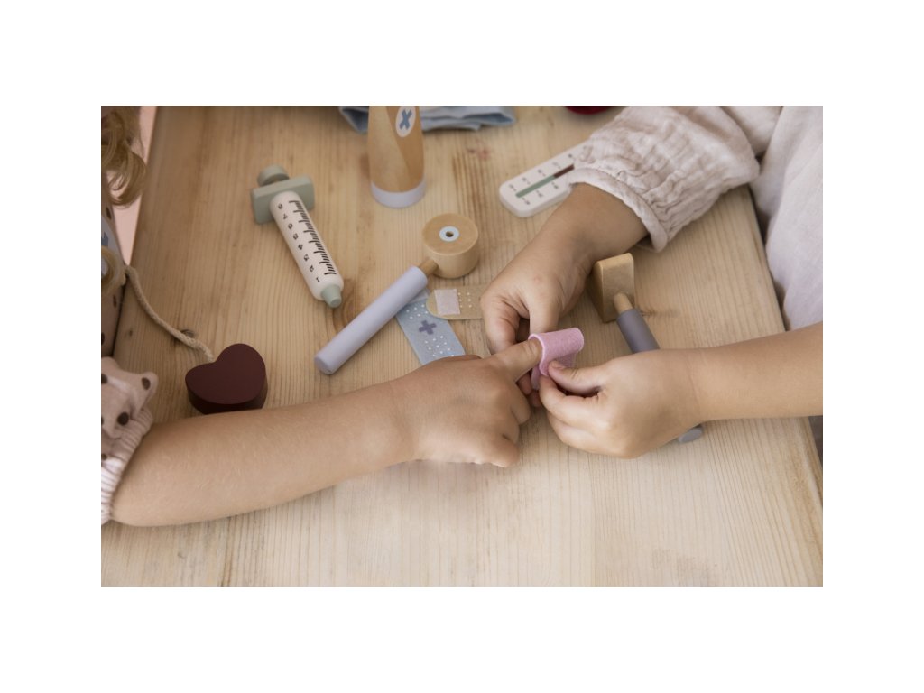 Vaši pacienti sa budú cítiť oveľa lepšie, keď budete mať po ruke túto lekársku tašku, pripravení zmerať teplotu, skontrolovať tep a krvný tlak či použiť stetoskop. Táto rola učí deti, že návšteva lekára nie je vôbec desivá vec!