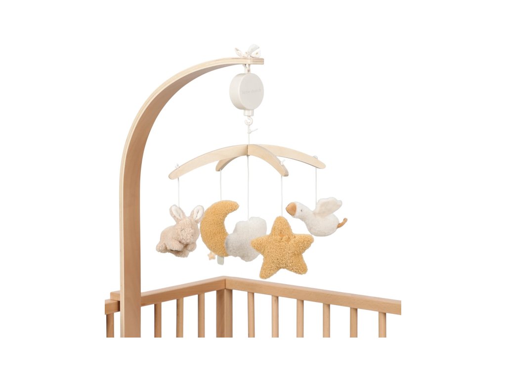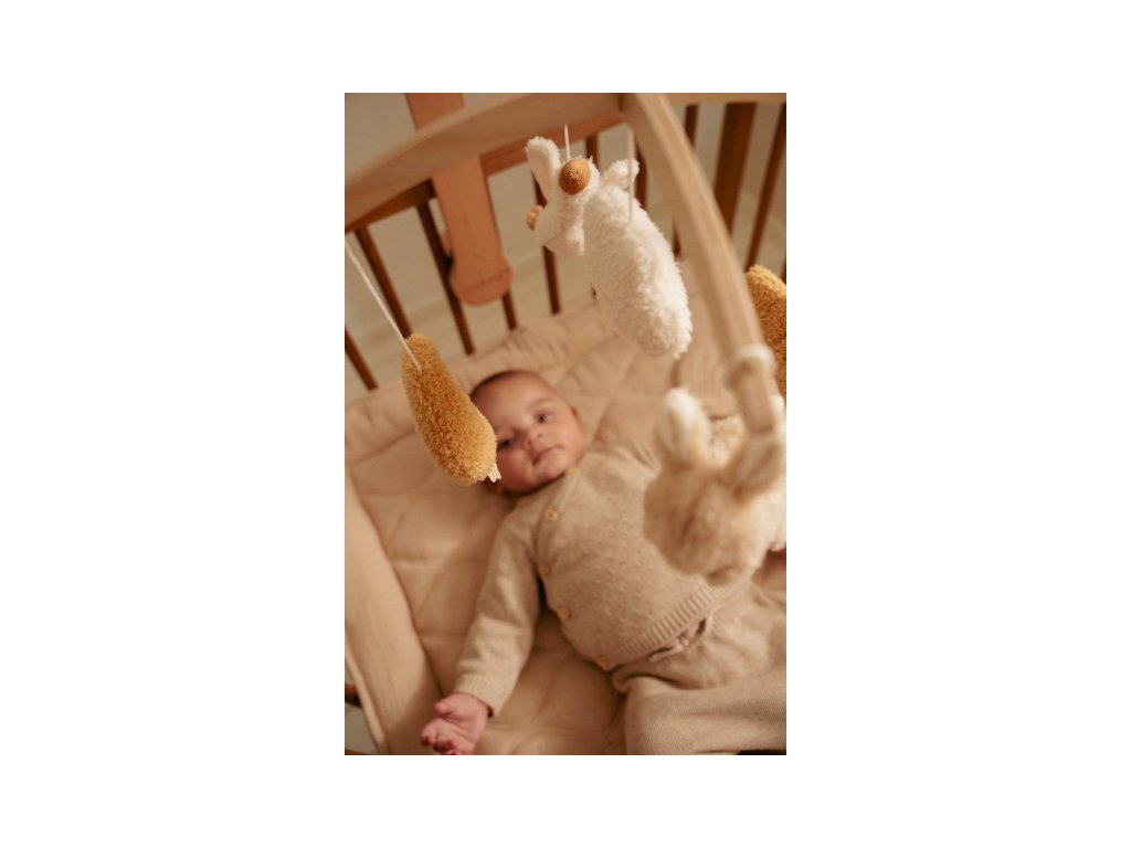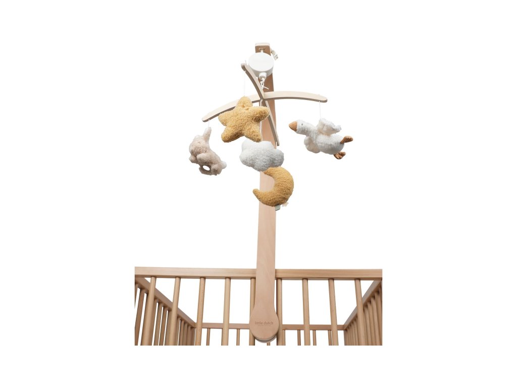 Krásny drevený kolotoč z kolekcie hračiek Little Dutch Farma hrá po natiahnutí uspávanku na upokojenie vášho bábätka pred spaním. Pozornosť dieťaťa upúta päť otáčajúcich sa hračiek v podobe zvieratiek a motívov zo života na farme.