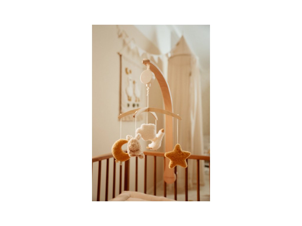 Kolotoč sa ľahko pripevní na postieľku alebo ohrádku.