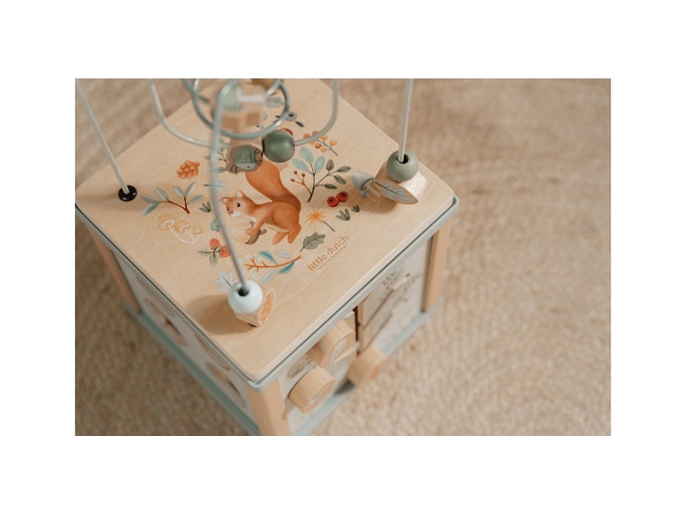 Little Dutch Kocka s aktivitami je vyrobená z dreva certifikovaného FSC, čo zaručuje jej ekologickú šetrnosť a bezpečnosť pre deti. Je súčasťou dizajnovej kolekcie hračiek Little Dutch Farma.