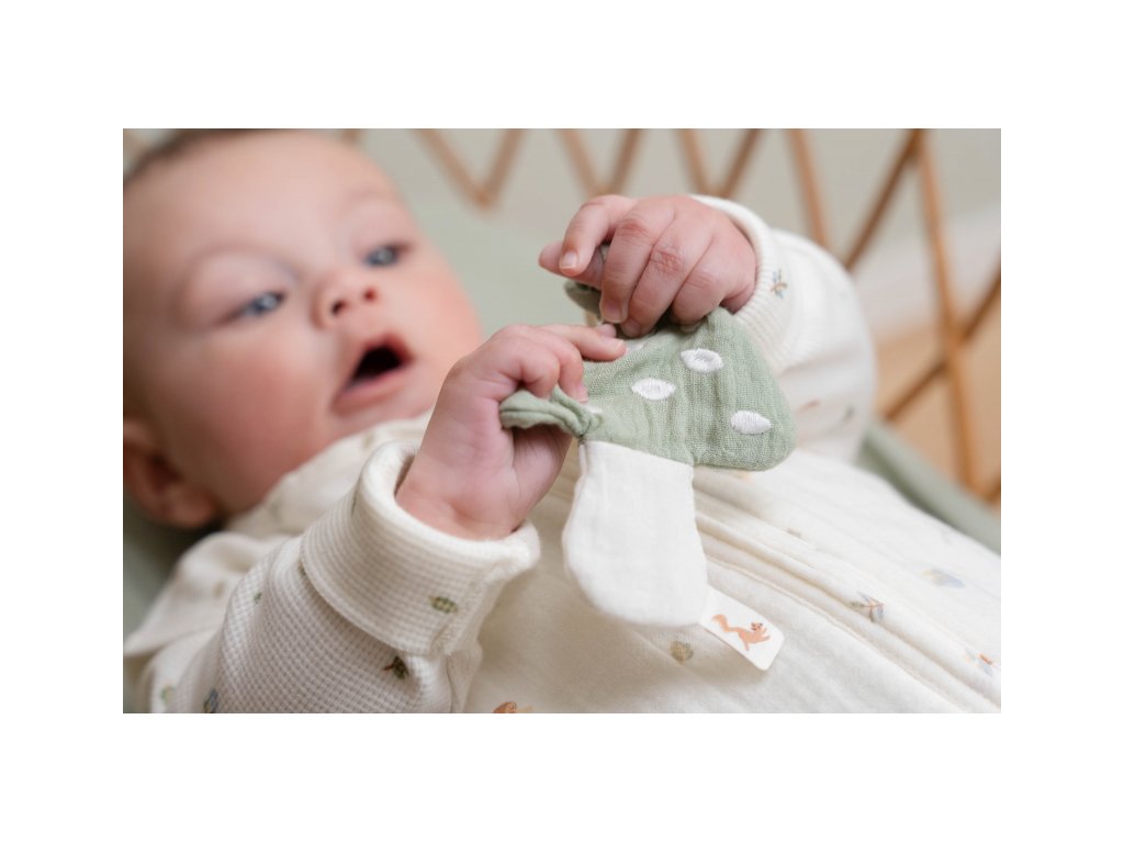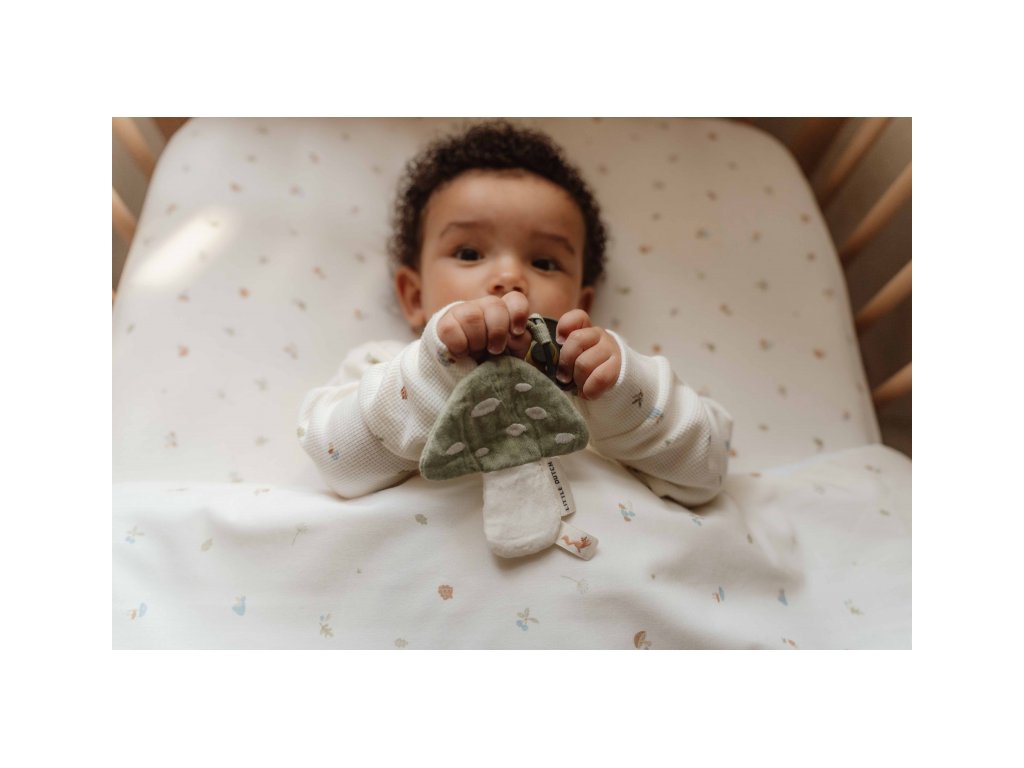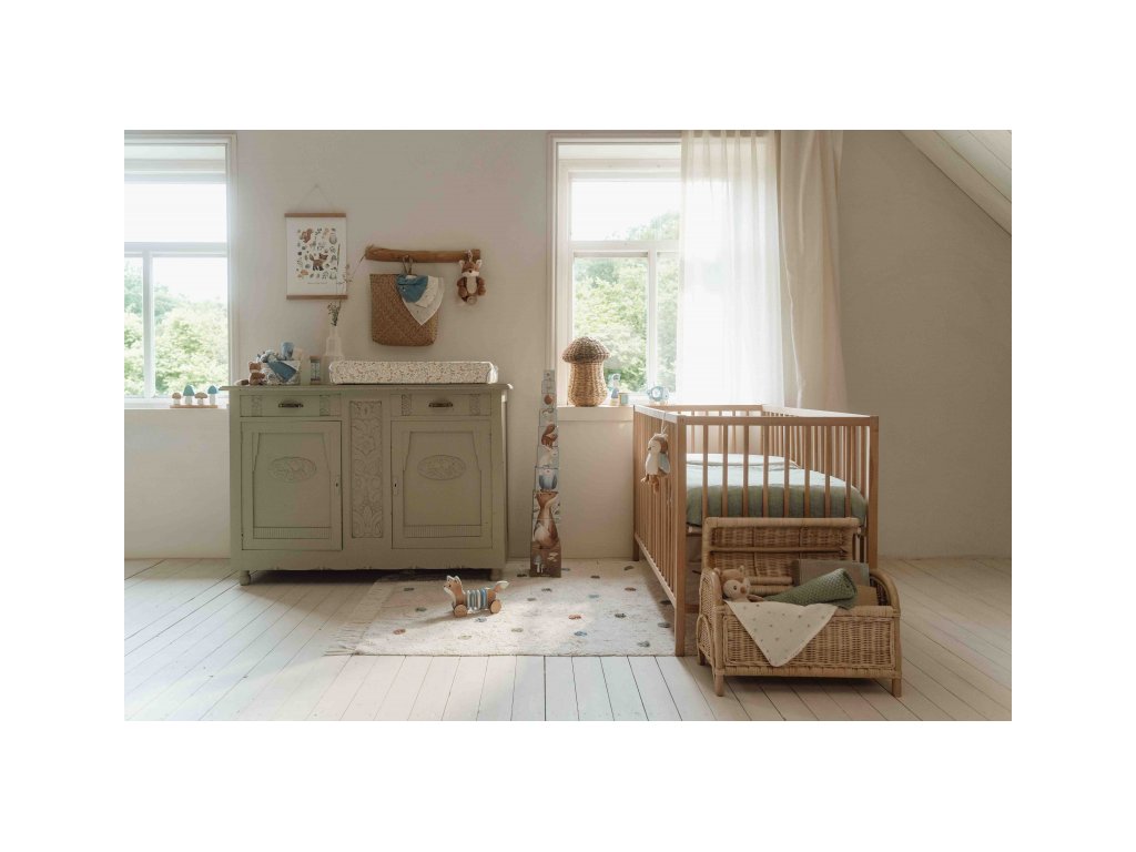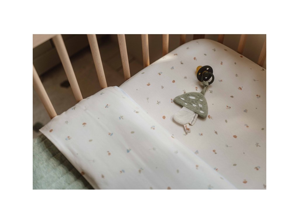 Plachta s jemnou potlačou je súčasťou dizajnovej kolekcie textilu, hračiek a doplnkov Little Dutch Blueberry Leaves.