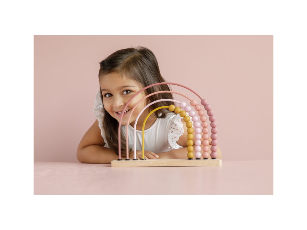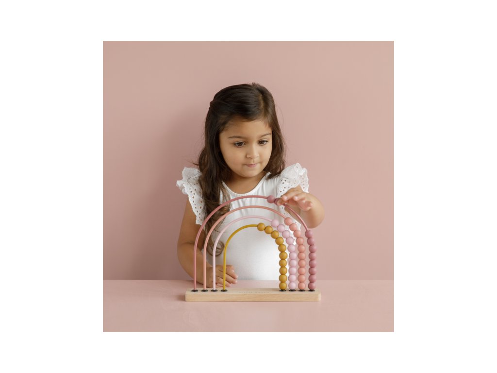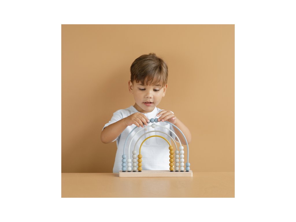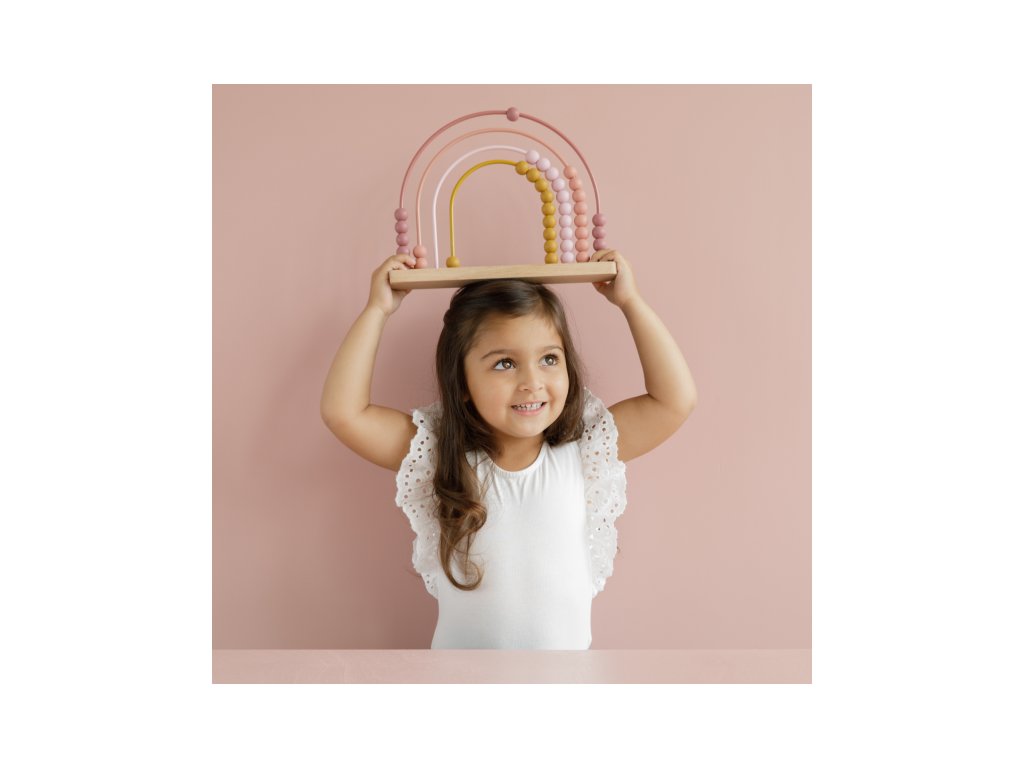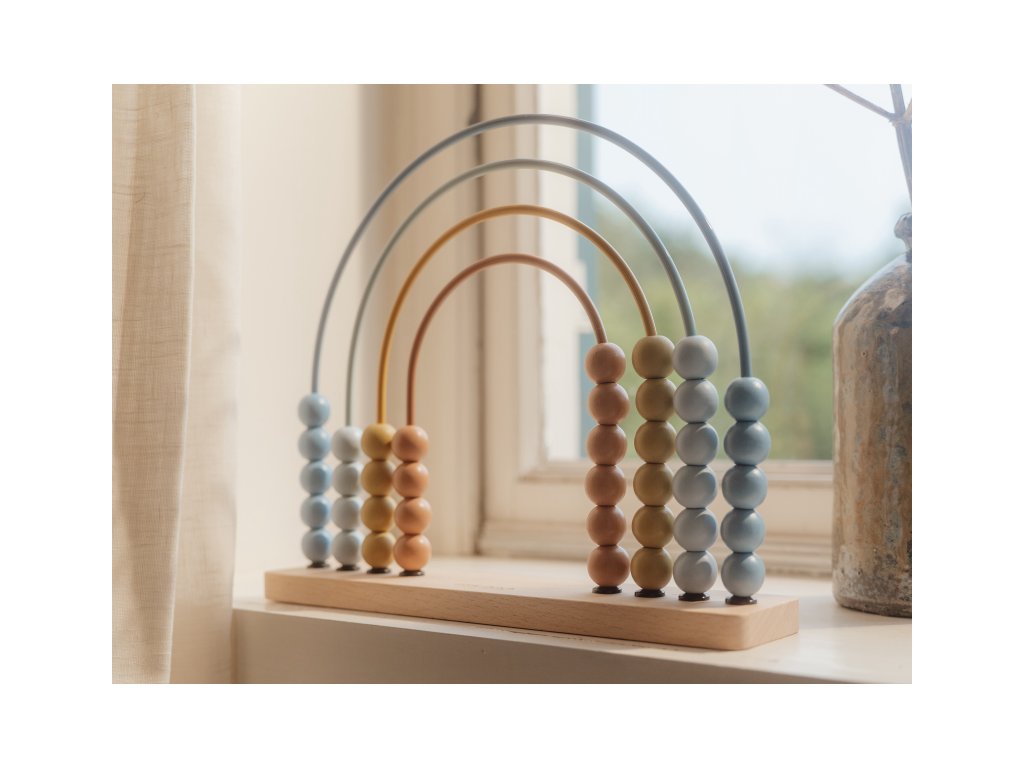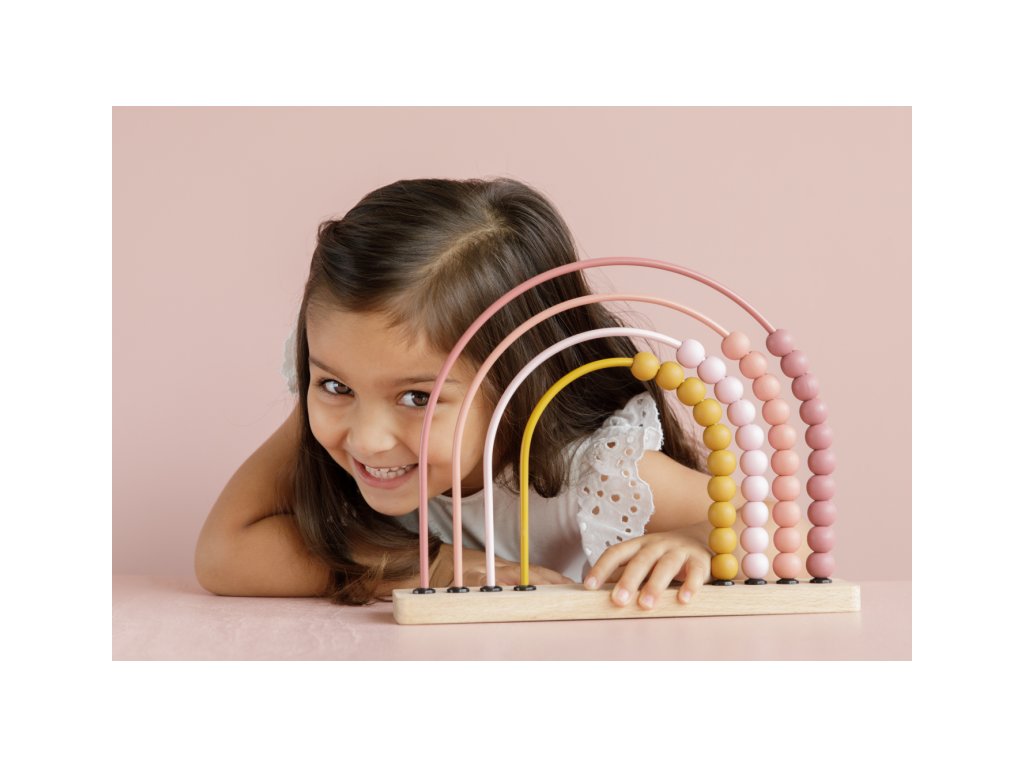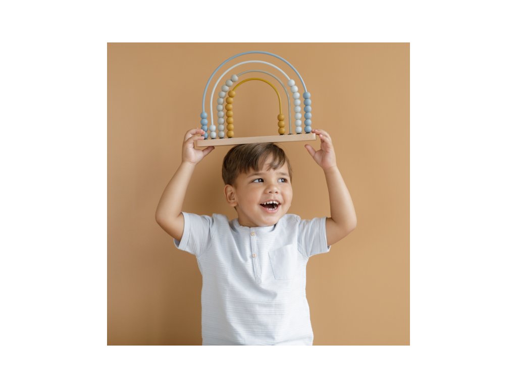 Počítanie je ešte zábavnejšie vďaka počítadlu v tvare dúhy! Deti milujú posúvanie korálok tam a späť. Týmto spôsobom sa počas hrania dozvedia viac o farbách a rozvíjajú svoju jemnú motoriku. A keď sú trochu staršie, môžu deti pomocou počítadla cvičiť matematiku. Zábavný spôsob, ako sa učiť počas hrania.