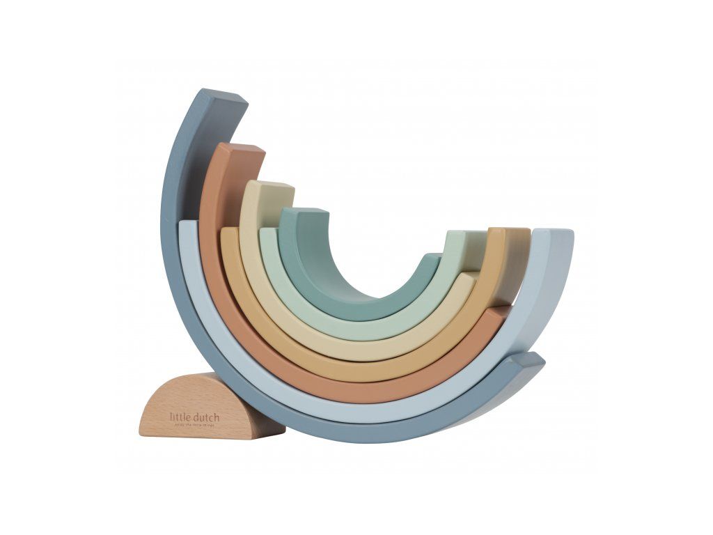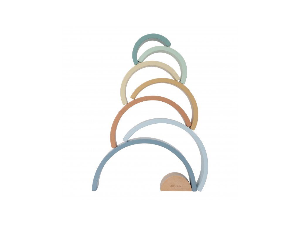 Krásna drevená skladačka v tvare dúhy umožní deťom používať svoju predstavivosť na vytváranie rôznych tvarov. Dokáže s jej pomocou postaviť napríklad železničný tunel, domček pre malé bábiky alebo most pre autá. Možností je nekonečne veľa!