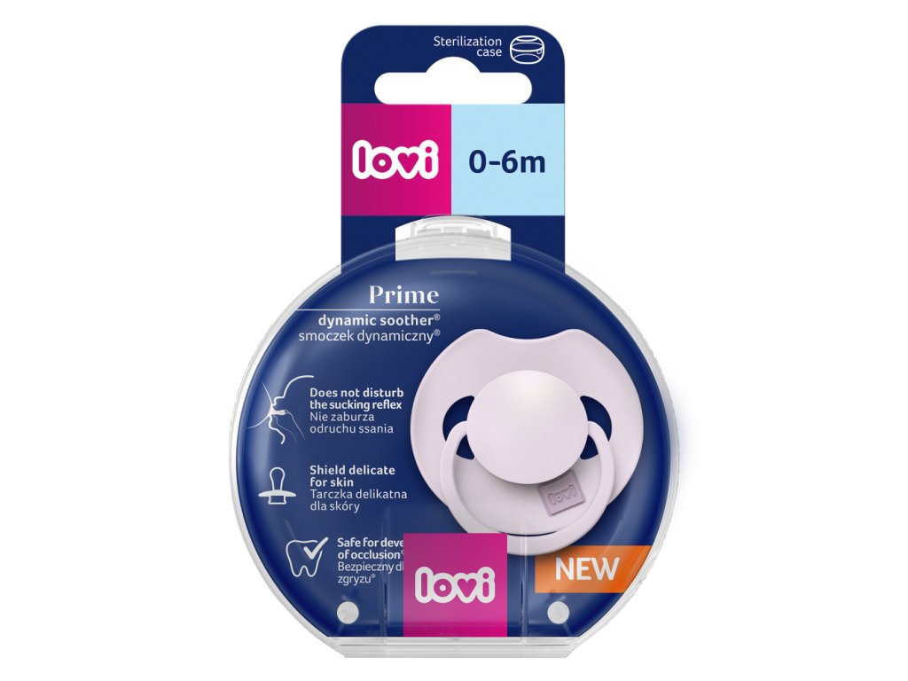 Dynamický cumlík LOVI PRIME navyše nenarúša vývoj reči a hryzenia*. Špička je sploštená a v časti pri štítku je tak tenká, že umožňuje dieťaťu voľne zatvárať ústa a správne pracovať ďasnami pri satí a poskytuje dostatok priestoru v ústach pre prácu jazyka, čo znižuje riziko maloklúzie a chýb reči*.