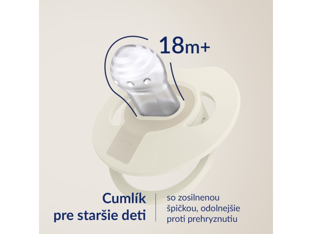 Pred prvým použitím cumlíky varte vo vriacej vode po dobu 5 minút. Potom po vychladnutí vytlačte zvyšnú vodu. Pred každým použitím cumlík umyte teplou vodou. priloženom dezinfekčnom puzdre podľa dodaného návodu. nepoužívajte antibakteriálne alebo abrazívne čistiace prostriedky. Príliš vysoké koncentrácie čistiacich prostriedkov môžu poškodiť cumlík v umývačke riadu. každé 1-2 mesiace. Ak si dieťa vloží celý cumlík do úst, NEPREDAJTE PANICE. Cumlík je navrhnutý tak, aby ho dieťa nemohlo prehltnúť. 3 rokov. Pre bezpečnosť vášho dieťaťa.