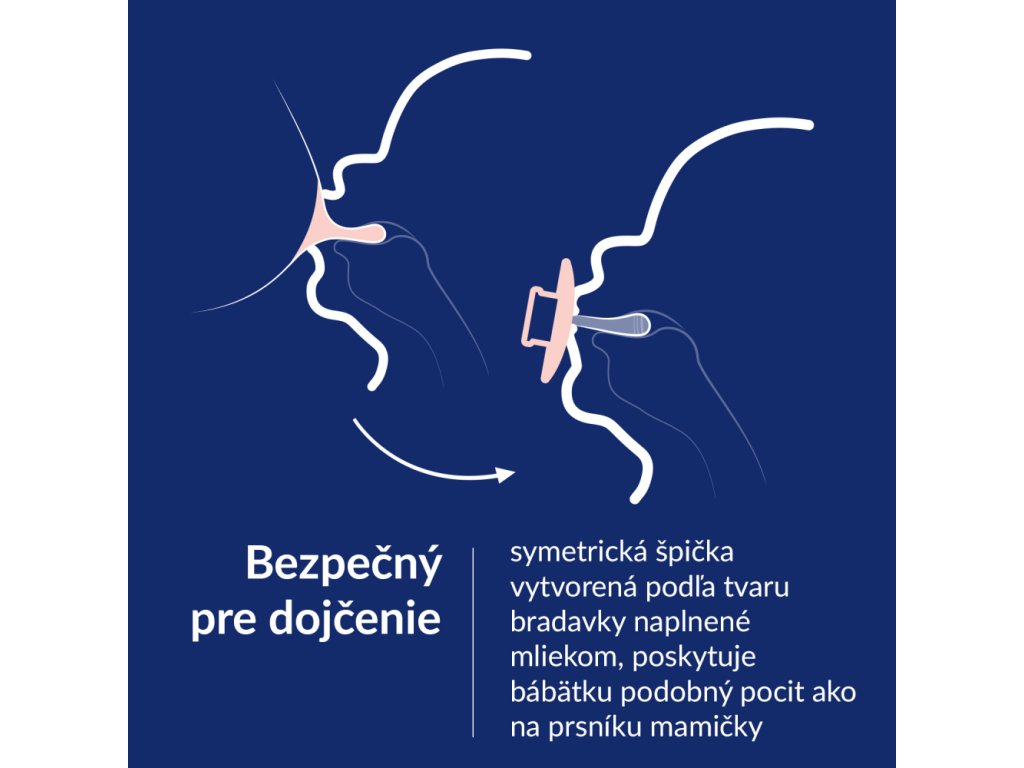 Symetrická špička vytvorená podľa tvaru bradavky naplnenej mliekom, poskytuje bábätku podobný pocit ako na prsníku mamičky.