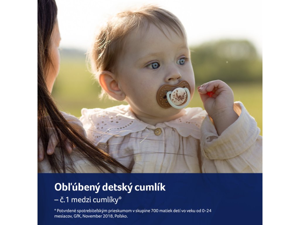*Štúdia používania cumlíkov vykonaná v klinických podmienkach na skupine 150 dojčiat vo veku 0–18 mesiacov na špecializovaných regionálnych pediatrických a neurologických klinikách v Poľsku, prevádzkovaných v rámci Národného fondu zdravia, v Katoviciach, Rzeszówe a Bydgoszczi, zahŕňajúce pôrodné asistentky a rodičov, v roku 2010.