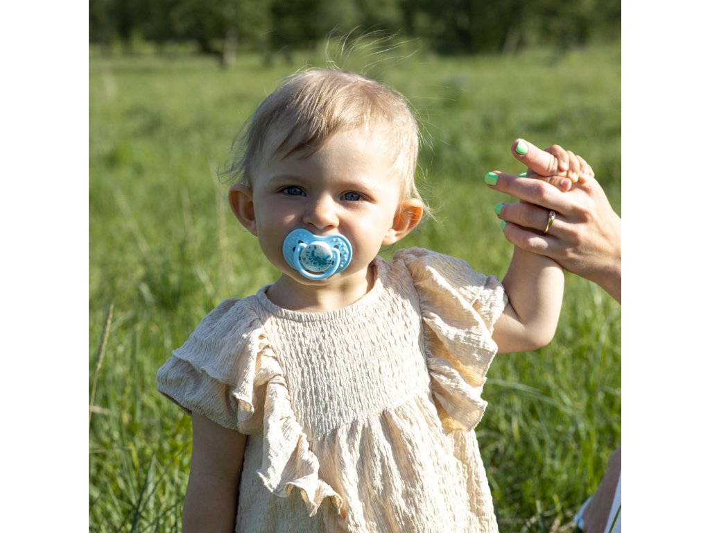 Veľmi ľahký cumlík, ktorý nezaťažuje detské ústa a minimalizuje tak riziko vzniku krivých zubov (malooklúzia).